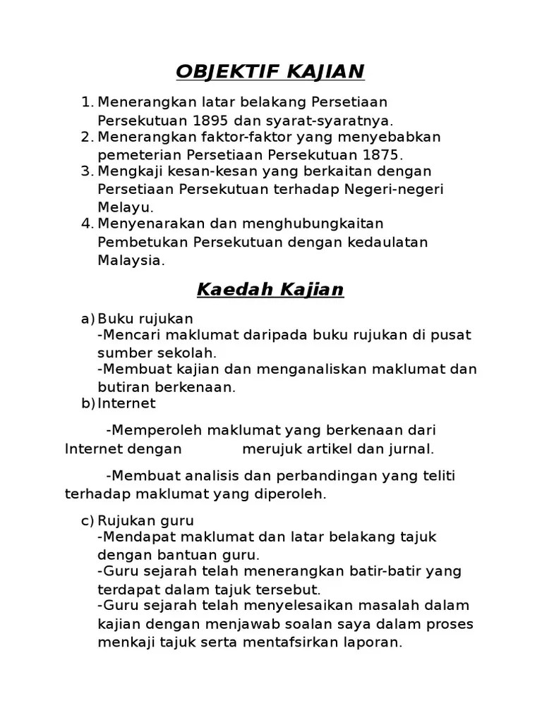 Objektif kajian dalam melaksanakan kerja kursus sejarah ini, terdapat beberapa objektif yang ingin saya capai. Contoh objektif kajian sejarah pt3 2020 tingkatan 3, pendidikan vernakular barat masalah perpaduan di malaysia sebelum selepas kemerdekaan. Objektif kajian kajian kes ini dilaksanakan bagi memenuhi beberapa objektif iaitu : Haira azura binti talip :